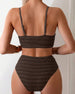 Badeanzug Hohe Taille Gestreift Dreieck Zweiteilig