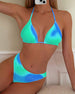 Bunt bedruckter Patchwork-Spitzen-Neckholder-Bikini