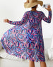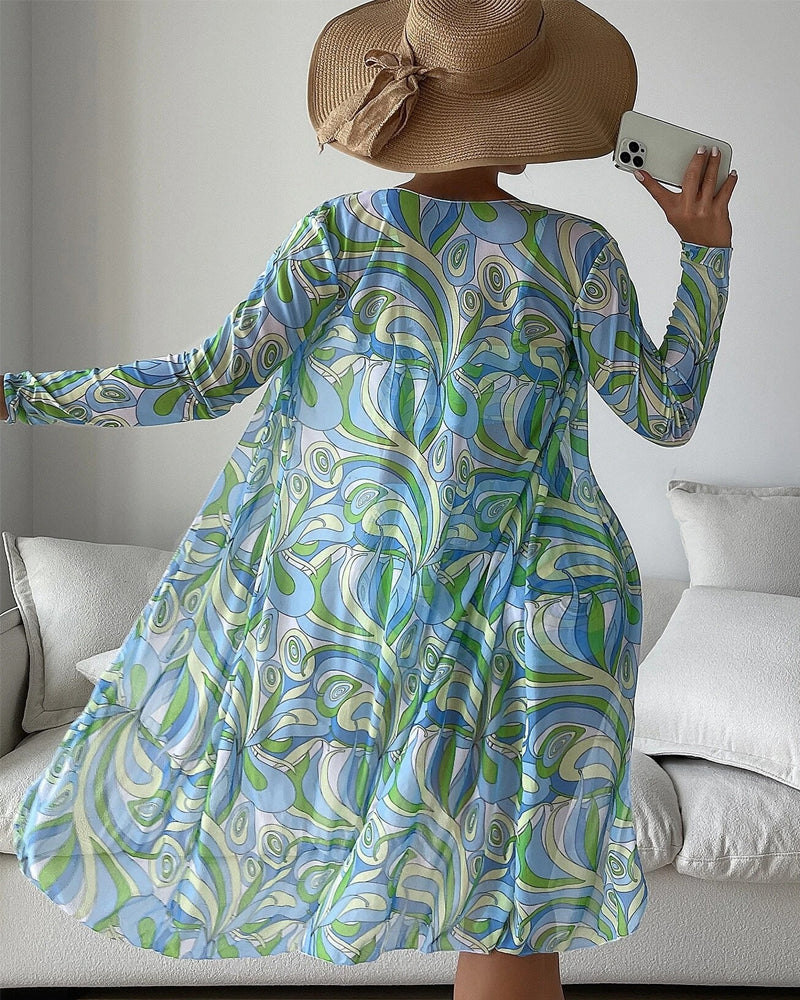 Bunt bedrucktes taschenkleid mit v-ausschnitt und halbarm