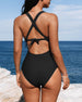Badeanzug mit farbblock und überkreuzten trägern