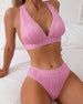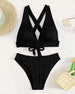 Einfarbiger, sexy Bikini mit tiefem V-Ausschnitt