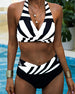 Badeanzug Zweiteilig Gestreift Farbblock Bikini