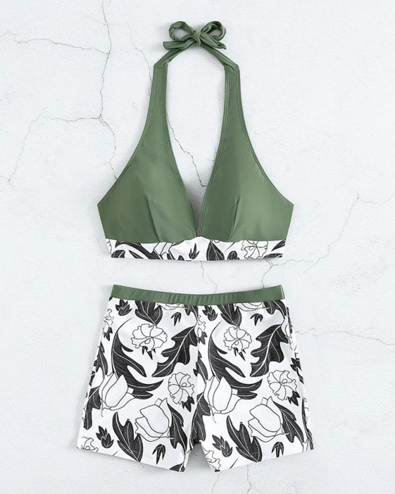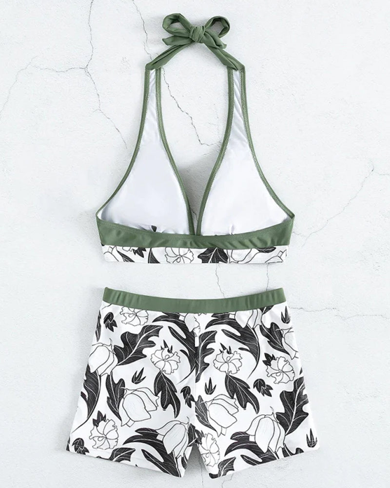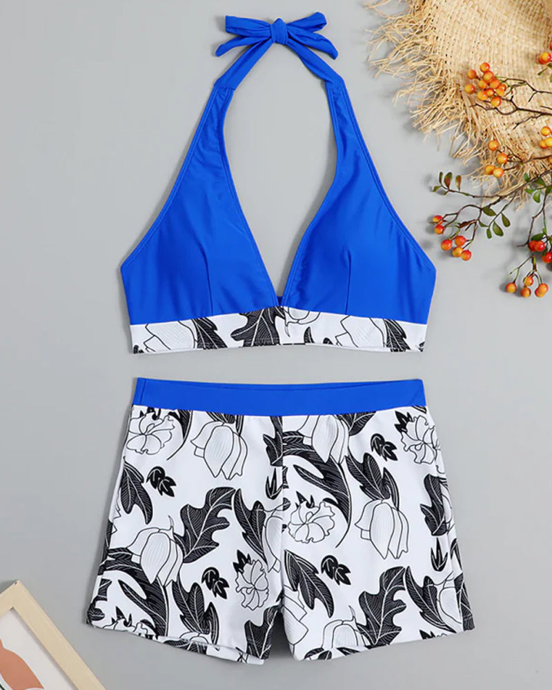 Neckholder-Bikinis mit floralem und geometrischem Druck