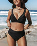 Badeanzug Hohe Taille Gestreift Dreieck Zweiteilig
