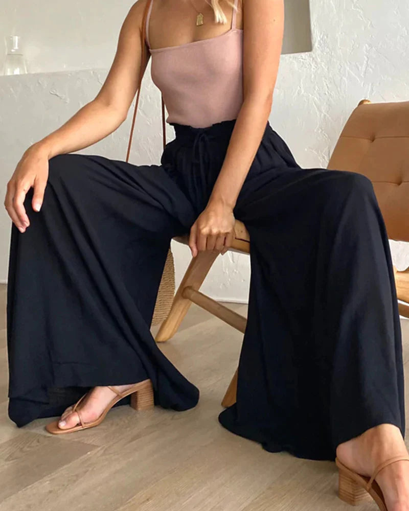 Einfarbige Hose mit weitem Bein und hoher Taille