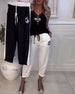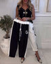 Modische hose in einfarbiger farbe mit unregelmäßigem patchwork und taschen