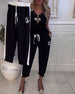 Modischer bedruckter langarm-jumpsuit mit tiefem v-ausschnitt