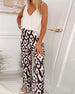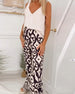 Modischer bedruckter langarm-jumpsuit mit tiefem v-ausschnitt