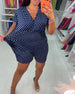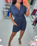 Lässiger kurzarm-jumpsuit mit v-ausschnitt und polka-dot-print