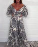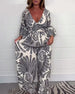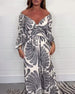 Modischer bedruckter langarm-jumpsuit mit tiefem v-ausschnitt