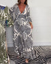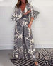Lockerer jumpsuit mit tiefem v-retro-print und glockenärmeln