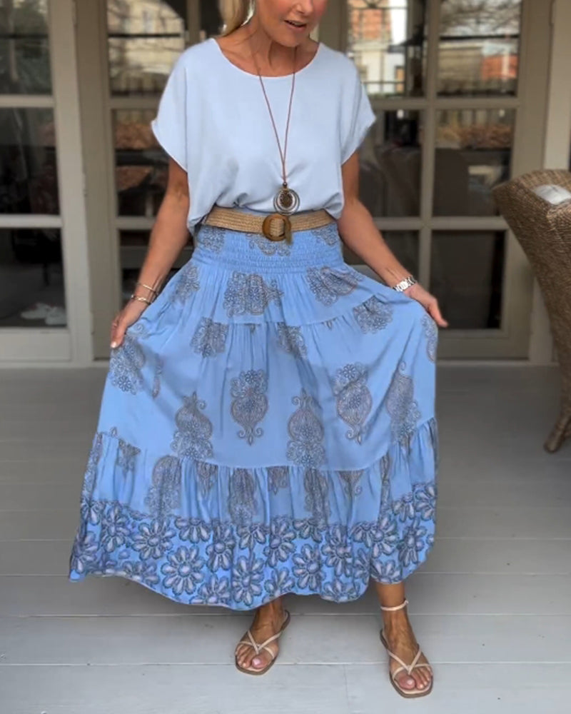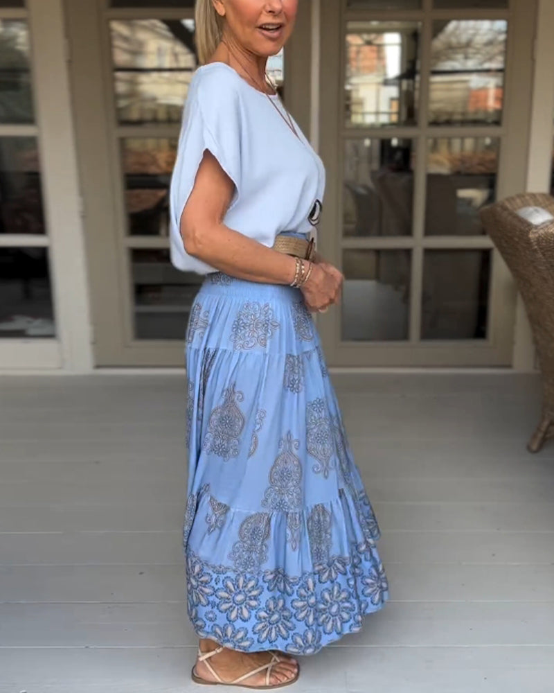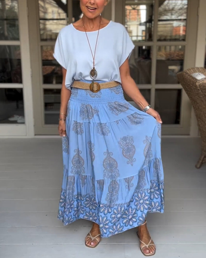 SPEZIFIKATIONEN Stil: Zwanglos Oberteil Typ: Blusen Material: Baumwollmischungen Muster Typ: Druck Ausschnitt: V-Ausschnitt Ärmel Typ: Überschnittene Schulter Ärmellänge: Halbe Ärmel Hose Typ: Weites Bein Länge der Hose: Lang Taille Typ: Mittlere Taille Passform Typ: Normal Jahreszeit: Sommer Einzelheiten: Rückenfrei, Geschnürt, Rüsche, Knote...