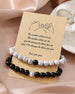• Elegantes Design: Das Armbandset besticht durch eine harmonische Kombination aus weißen Steinperlen und mattschwarzen Steinperlen, die einen markanten Kontrast erzeugen, der zugleich modern und zeitlos ist.