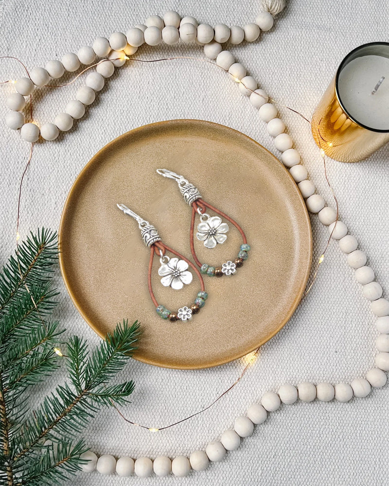 • 1 x Boho Lederseil Blumen Simple Ohrringe