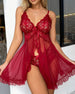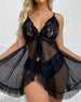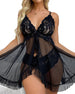 Schlafbekleidung Spitze V-Ausschnitt Schleifenverzierung Ärmelloses Babydoll Sexy Durchsichtig Teddy