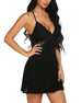 Schlafbekleidung Spitze V-Ausschnitt Schleifenverzierung Ärmelloses Babydoll Sexy Durchsichtig Teddy