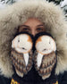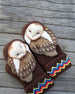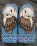 • 1 Paar handgefertigte Wollhandschuhe mit Eulen - Skandinavisches Muster mit Eulen