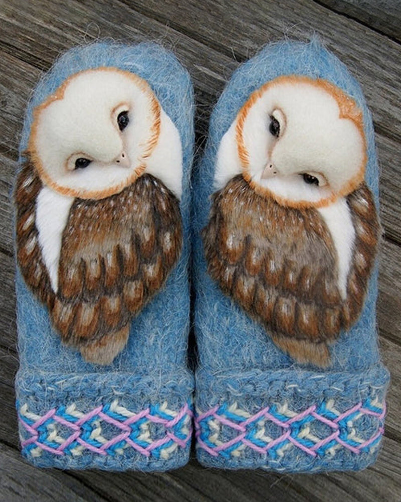 -9% Handgewebte nordische Wollhandschuhe mit Eulen
