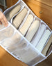 Verwenden Sie die Aufbewahrungsbox mit Fächern, um Ihre Artikel aufzubewahren. Sie können Ihre Artikel schnell und ordentlich aufbewahren, sodass sie leichter zu finden sind! Verabschieden Sie sich von Unordnung und halten Sie Ihren Kleiderschrank aufgeräumt.