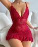 Sexy Spitzenbesatz einfarbiges erotisches Nachtwäsche