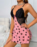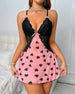 Nachthemd Kontrastfarbe Rückenfrei Hoher Schlitz Sexy Herzprint