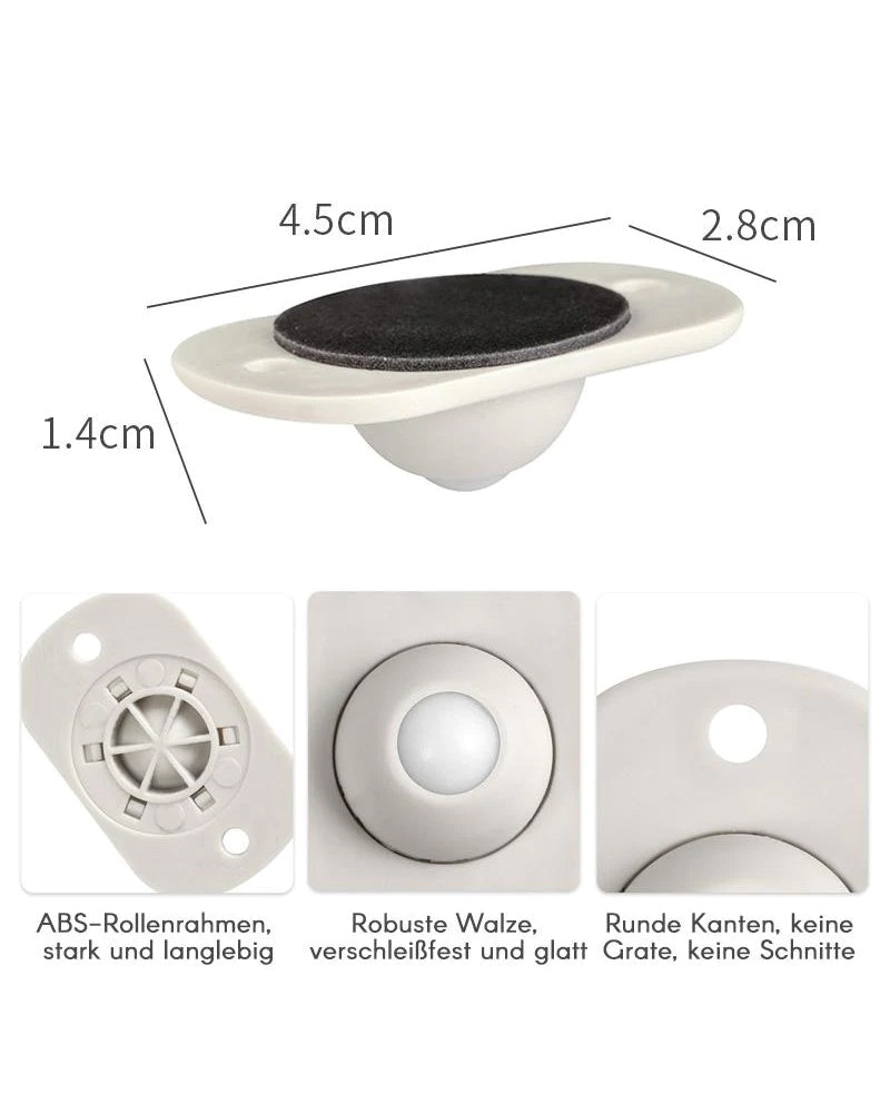 • [Effektive Arbeitsersparnis] Kleben Sie einfach das Universalrad auf den Boden der Box, und die schwere Box kann leicht bewegt werden! Es ist zum Bewegen und Reinigen geeignet und kann auf verschiedene Arten und Größen von Aufbewahrungs- und Verpackungsboxen angewendet werden.