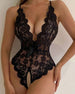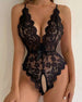 Schlafbekleidung Spitze V-Ausschnitt Schleifenverzierung Ärmelloses Babydoll Sexy Durchsichtig Teddy
