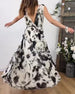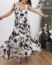 Elegantes bedrucktes Kleid mit V-Ausschnitt und Krawatte