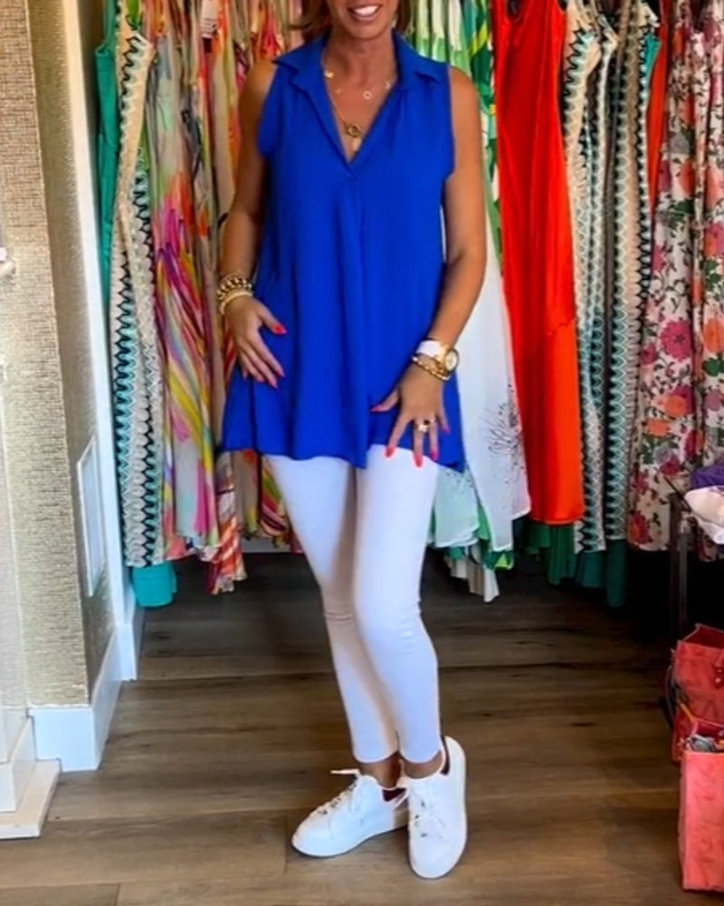 • Dieses ärmellose Oberteil ist einfarbig und bietet einen schlichten, aber eleganten Look. Das Fehlen von Ärmeln macht es bequem und perfekt für warmes Wetter.