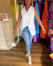 Lässige, einfarbige Bluse mit V-Ausschnitt und Knopf
