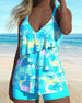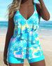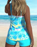 Badeanzug Doppelschicht Blattmuster Körperbedeckend
