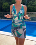 Kurzärmliges Schlitzkleid mit Blattmuster