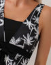 Kurzärmliges Schlitzkleid mit Blattmuster