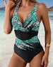 Badeanzug Leopardenmuster Farbblock Einteilig
