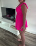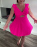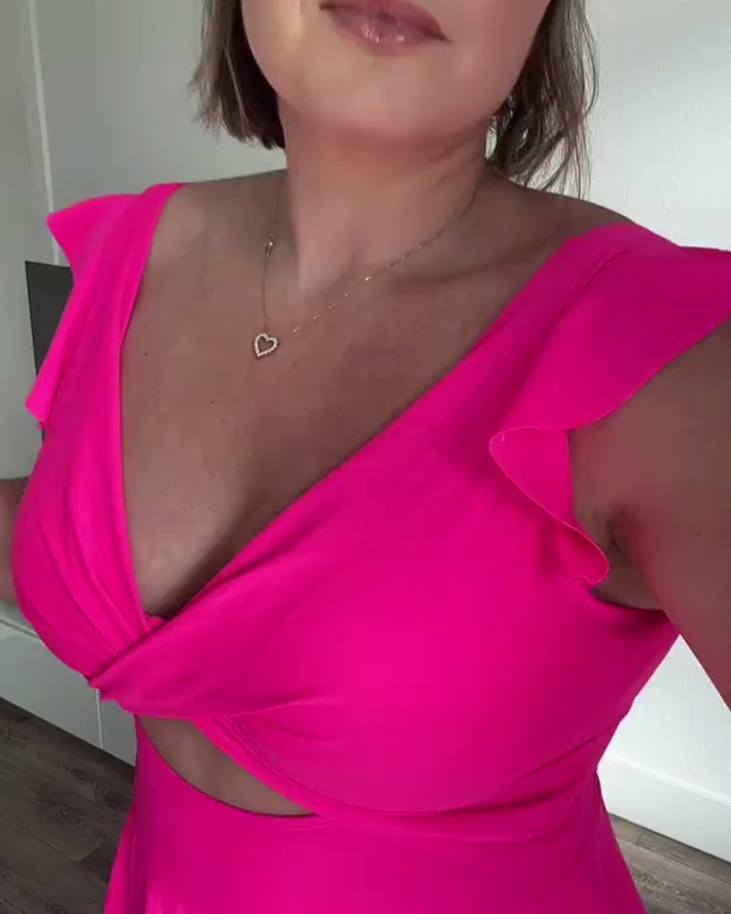 Einfarbiges, elegantes kleid mit rüschenärmeln und v-ausschnitt
