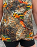 Kurzärmliges Schlitzkleid mit Blattmuster