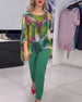 Elegantes bedrucktes Kleid mit V-Ausschnitt und Krawatte