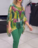 Bedruckte Bluse mit Fledermausärmeln und Rundhalsausschnitt