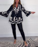 Bedruckte Bluse mit Glockenärmeln und Knöpfen