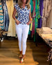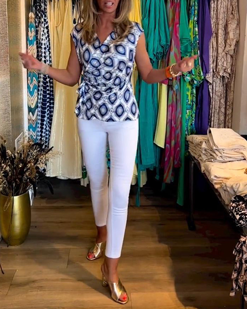 Bedrucktes, ärmelloses, elegantes Oberteil mit Schnürung