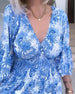 Lockeres, lässiges blumenkleid mit tiefem v-ausschnitt