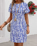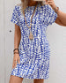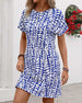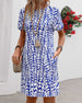 Lässiges bedrucktes kleid mit v-ausschnitt und halblangen ärmeln