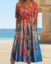 Elegantes bedrucktes Kleid mit V-Ausschnitt und Krawatte
