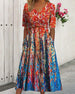 Lässiges bedrucktes kleid mit v-ausschnitt und halblangen ärmeln