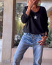Langarm-Spitzenoberteil mit V-Ausschnitt