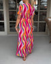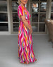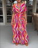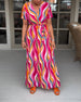 Bunt bedrucktes, kurzärmeliges, langes Schnürkleid