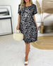 Lässiges bedrucktes kleid mit v-ausschnitt und halblangen ärmeln