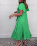 Einfarbiges, elegantes kleid mit rüschenärmeln und v-ausschnitt