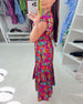Bunt bedrucktes taschenkleid mit v-ausschnitt und halbarm