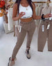 Modische hose in einfarbiger farbe mit unregelmäßigem patchwork und taschen